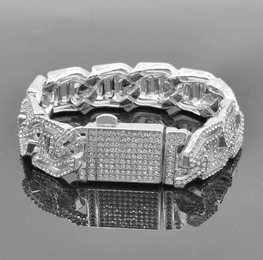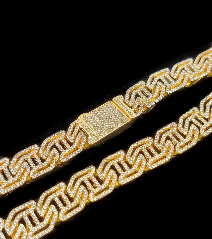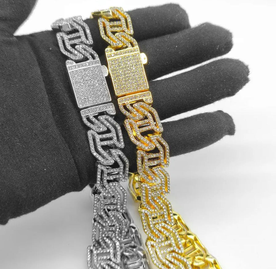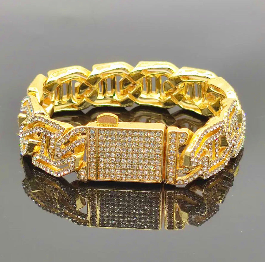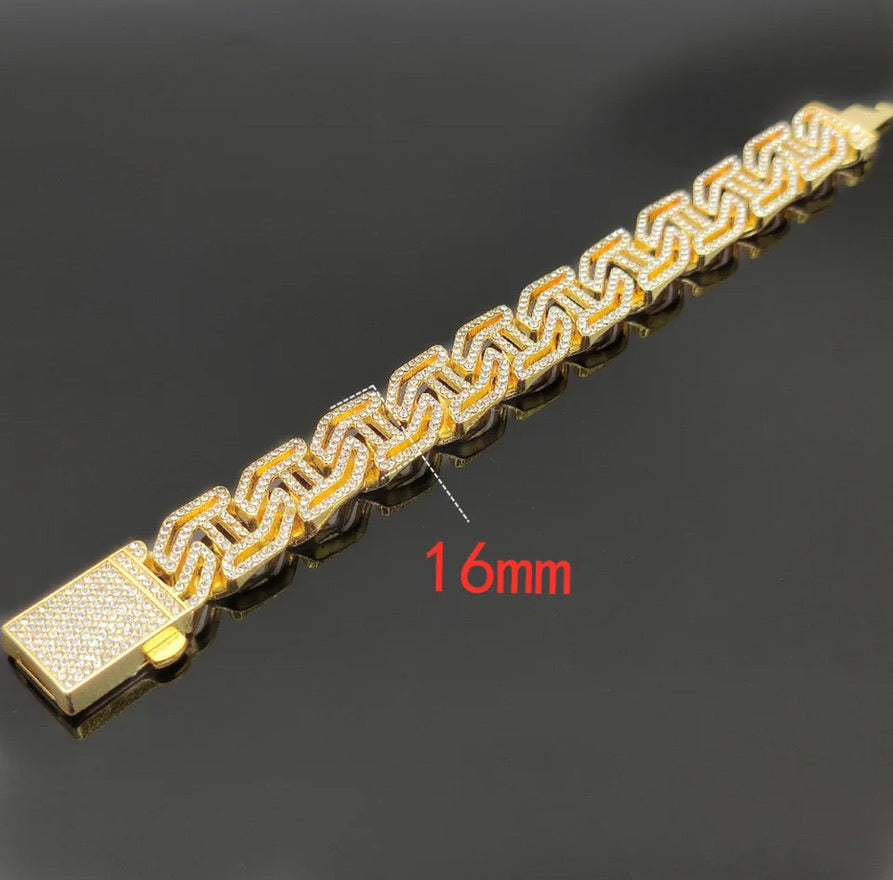 pulsera de cadena cubana chapada en oro de 12cm de ancho